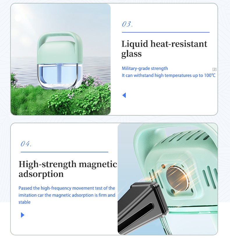 This Premium 10ml Liquid Glass Perfume Bottle Top Car Air Freshener Vent Diffuser is USB powered and features a modern design with a long-lasting scent. Made from eco-friendly glass and alloy materials, it offers natural evaporation for continuous fragrance. Suitable for car vents, it includes an alloy clip for secure placement. Available in black and green, this product supports custom logo printing with a minimum order quantity of 500pcs.