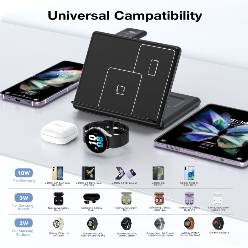ND-T25 3 in 1 foldable wireless charger is suitable for Samsung’s dedicated wireless charger for foldable screens