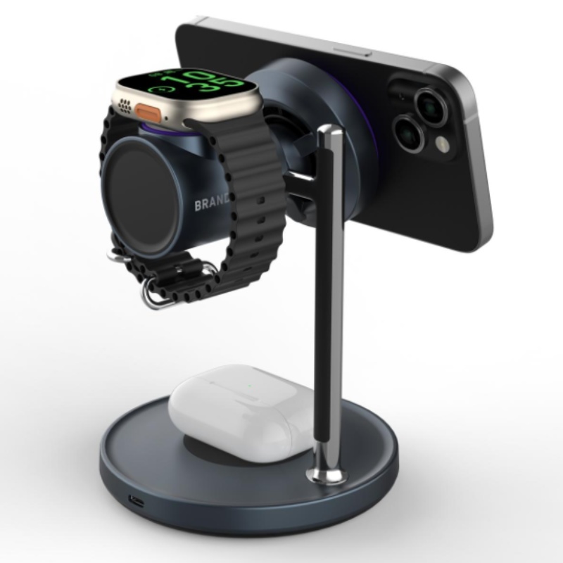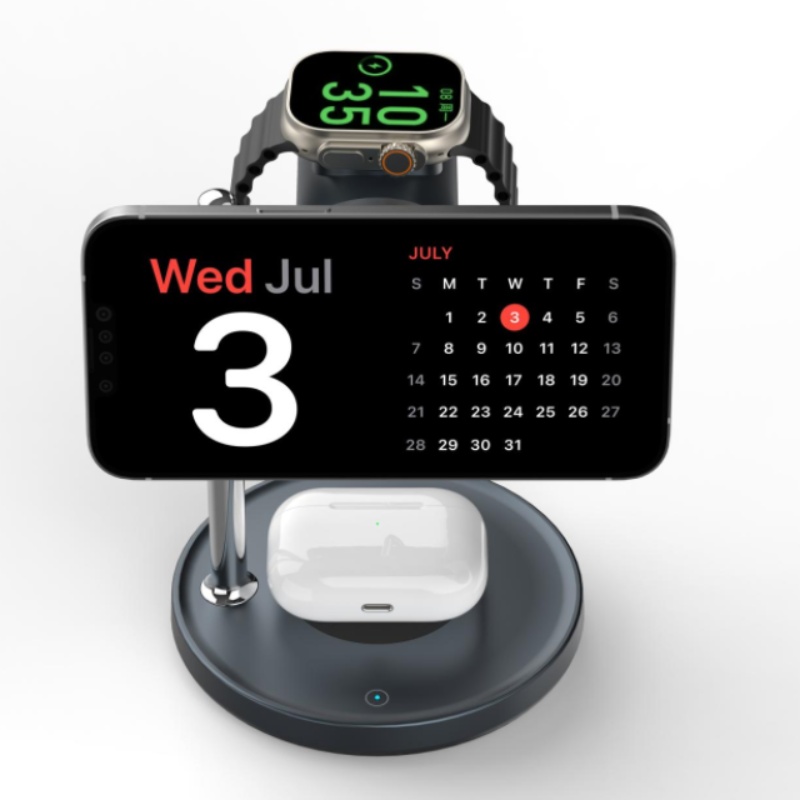 This QI2.2-certified 3 in 1 wireless charger delivers fast,efficient power to your smartphone,earbuds and smartwatch simultaneously.