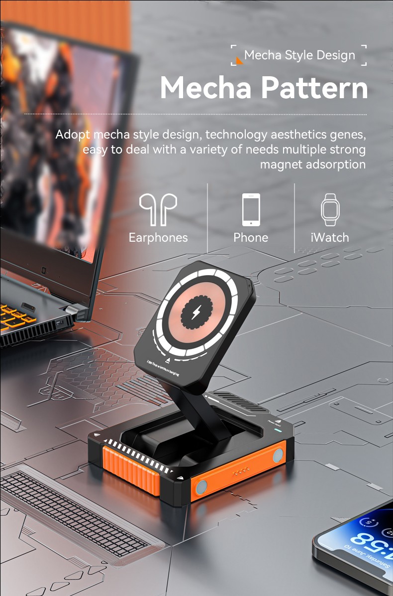| Product name | Magnetic 3 in1 mecha-style Magsafe Folding Wireless Charger Stand |