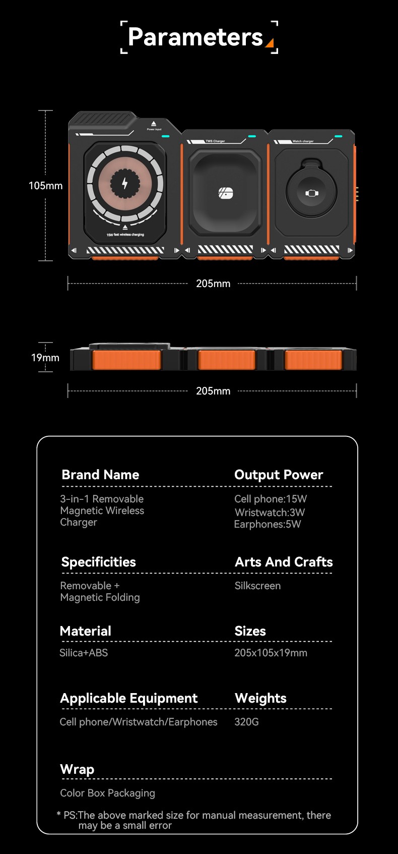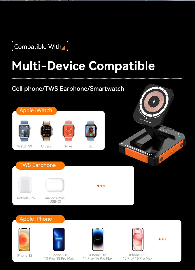 | Function | 15W Magnetic Wireless Charging Station Desktop wireless charger for Phone SmartWatch and Earbudsr |