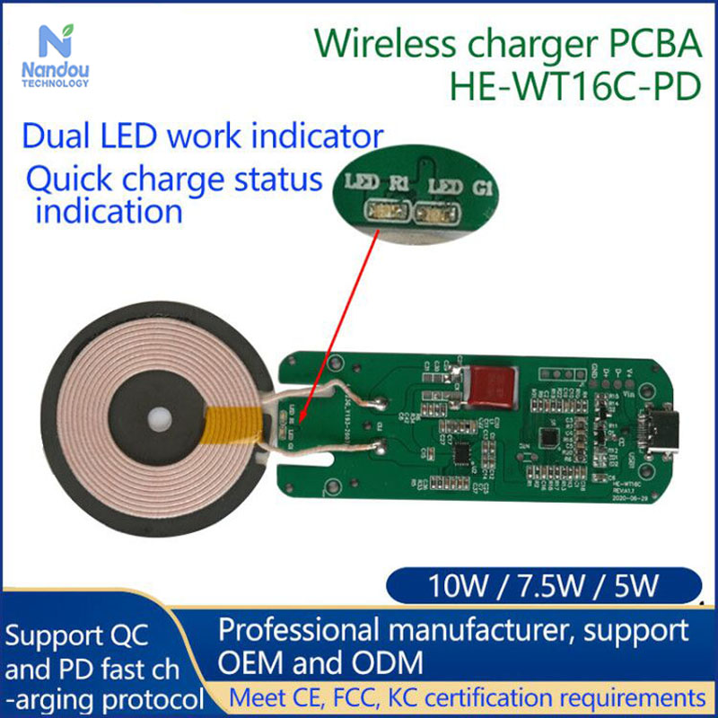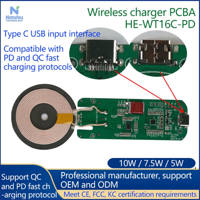 HE-WT16 Customized 10W Fast Wireless Charger Module Micro Type-C PCB Board Service Manufacturer