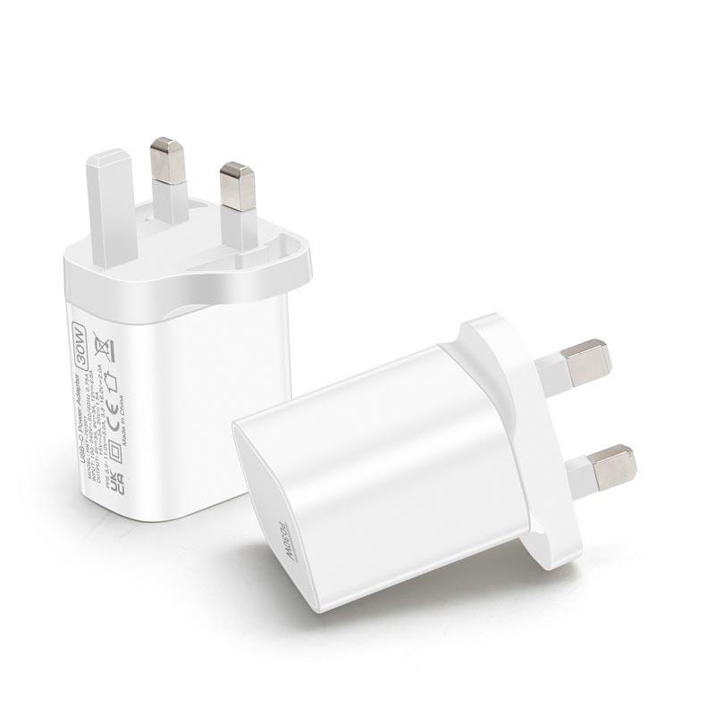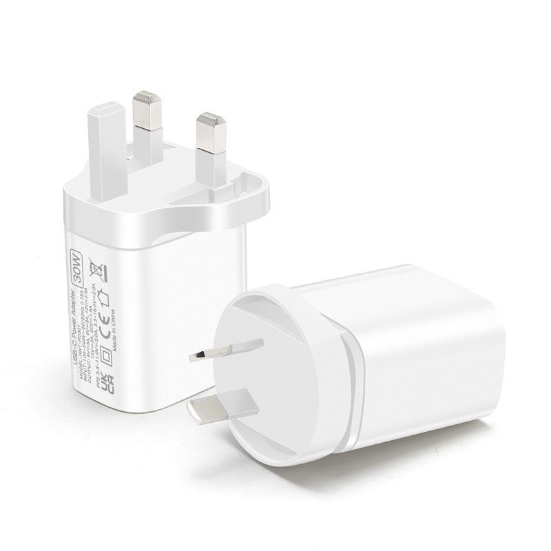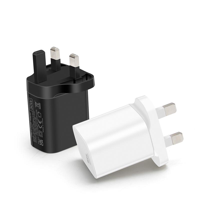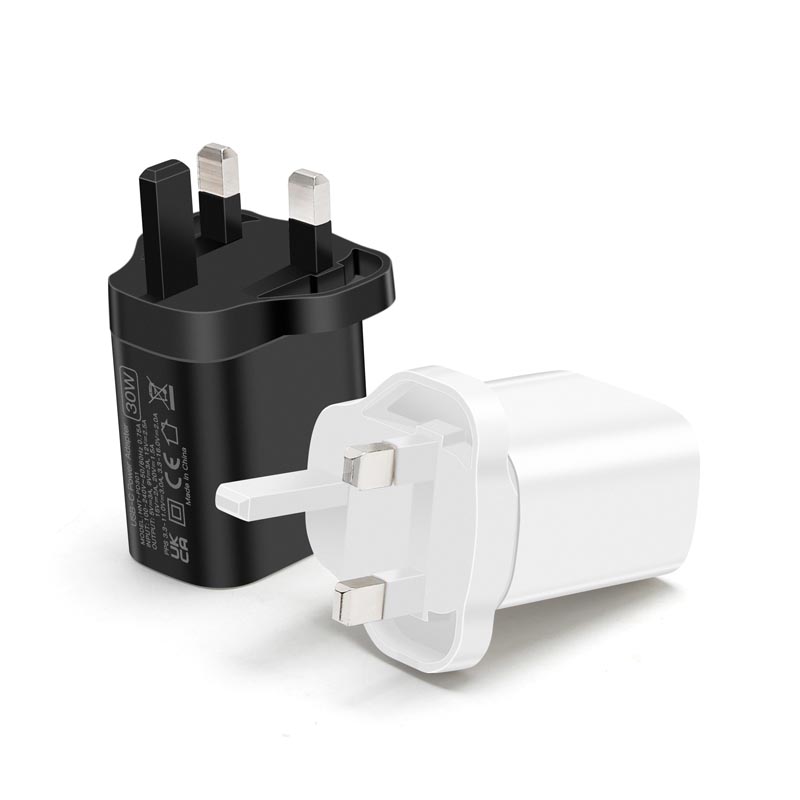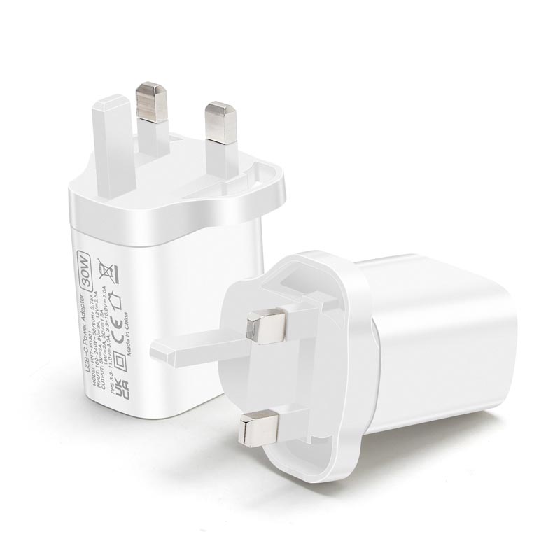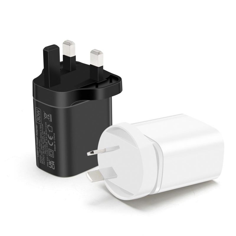 Dieses PD30W-Schnellladegerät mit UK-Stecker ist mit QC3.0- und PD3.0-Technologie ausgestattet und gewährleistet effizientes Laden für Geräte wie das iPhone 14, 15, 16 und 17 Pro Max. Hergestellt aus feuerfestem ABS und PC, garantiert es Sicherheit und Langlebigkeit.
