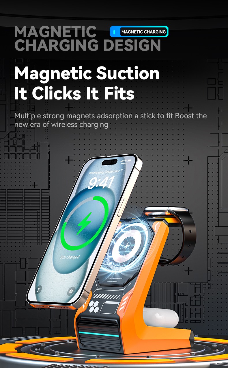 | Product name | Magnetic 3 in1 mecha-style Magsafe mobile phone wireless charging stand |