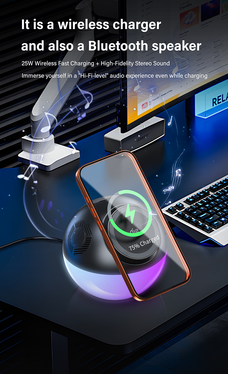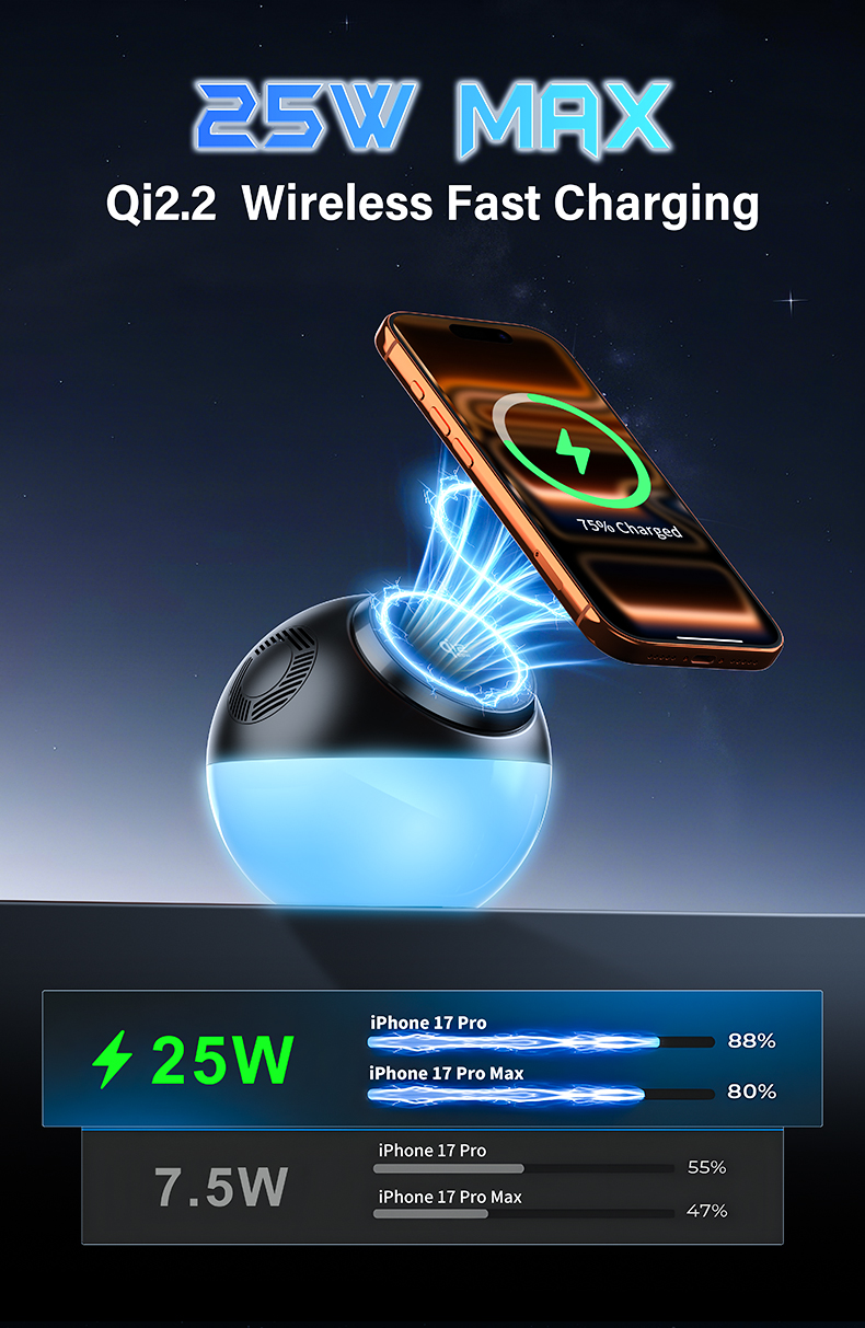 25W Wireless Fast Charging+High-Fidelity Stereo Sound immerse yourself in a “Hi-Fi-level”audio experience even while charging.