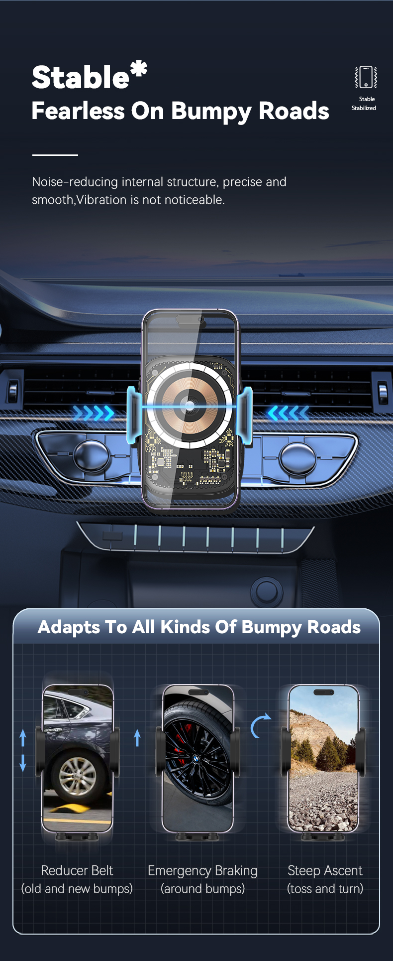 Say goodbye to the rattling and shaking interference saused by the traditional bracket.