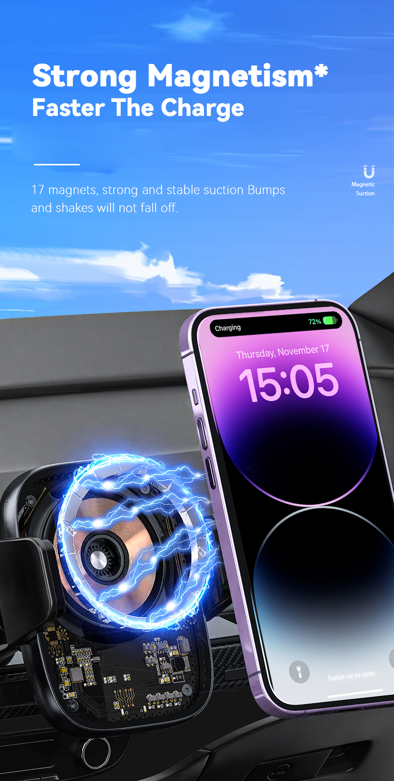 ND-X17 15W Magsafe car magnetic wireless Charger Touch-sensitive transparent car wireless charging phone stand