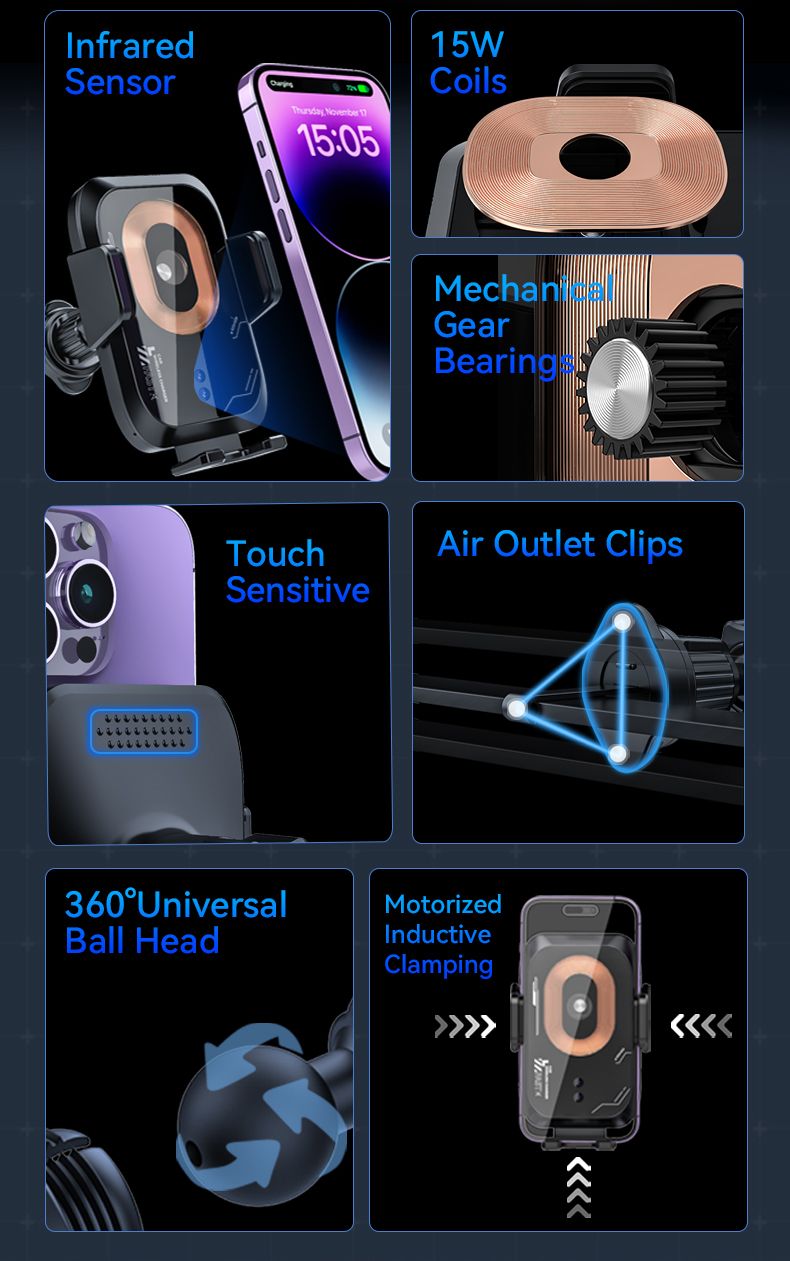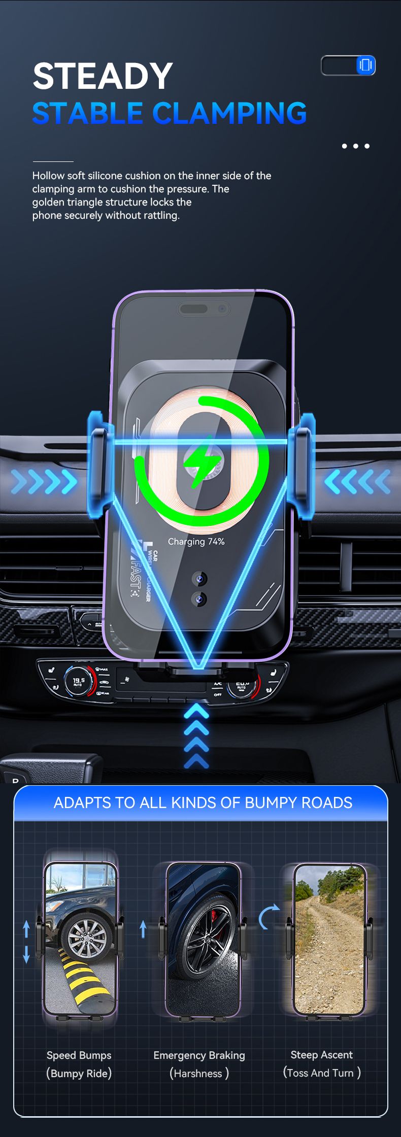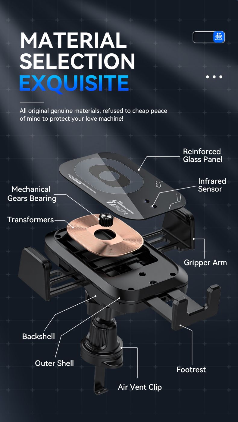 | Function | 15W car wireless charger Touch sensing Punk style car wireless charger |