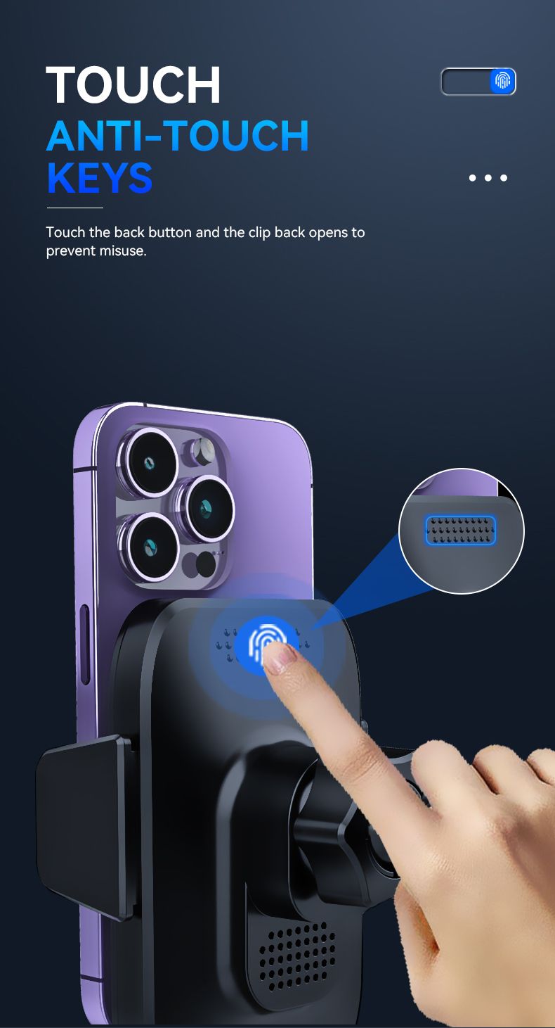 Put the phone close to the magic clip,infrared automatic induction contraction of arms,clamping the phone.