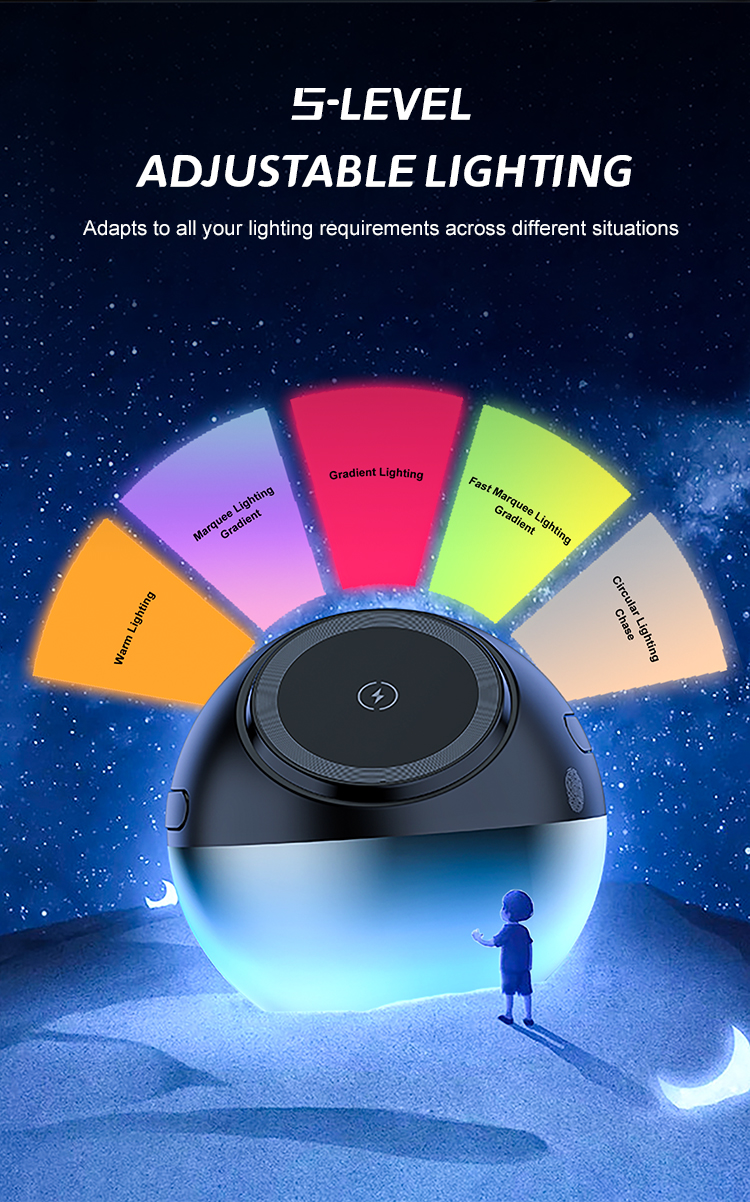 5 adjustable levels-from starlight glow to emergency lighting,filtering through clouds like moonlight to safeguard your night.