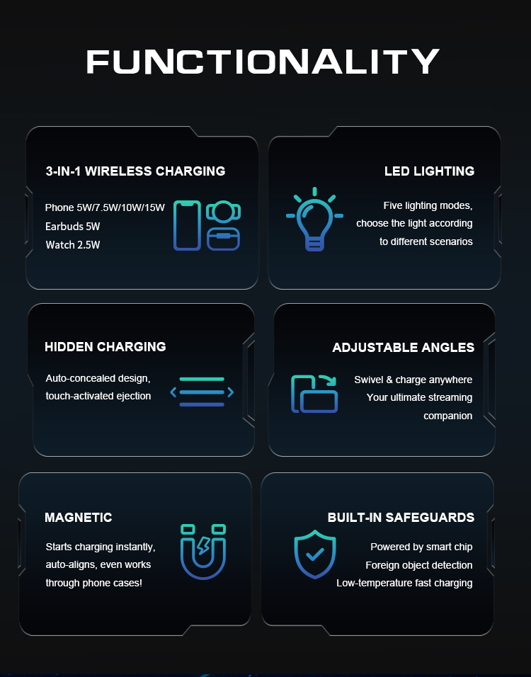 | Function | 15W Magnetic Wireless Charging Station With RGB Light |