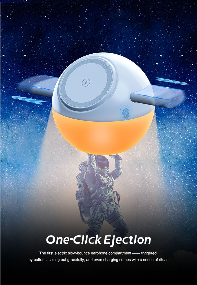 The first electric slow-bounce earphone compartment— triggered by buttons,sliding out gracefully,and even charging comes with a sense of ritual.