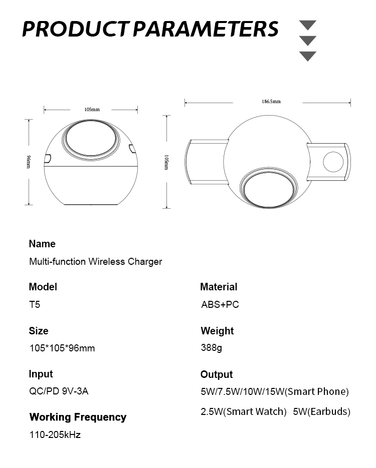 | Product name | Desktop Wireless Charger 3-in-1 Fast Charging Station for Mobile Phones |