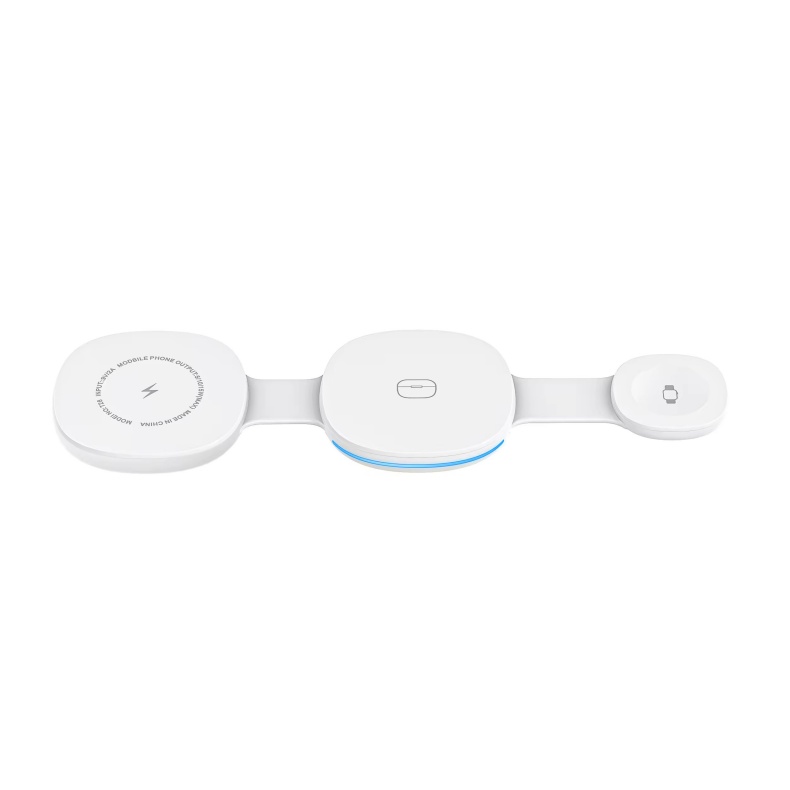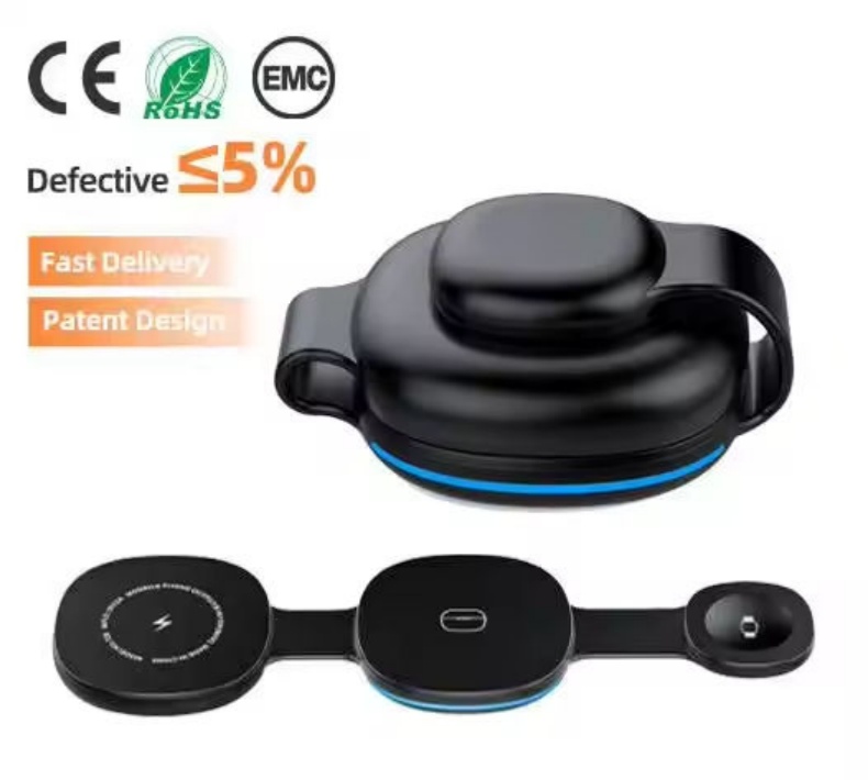 Experience 15W fast charging for your iPhone and Apple Watch with this foldable, travel-friendly 3-in-1 wireless charger. Its compact baseball-sized design ensures portability while supporting simultaneous charging for multiple devices,Its RGB lighting and short circuit protection enhance safety and aesthetics.