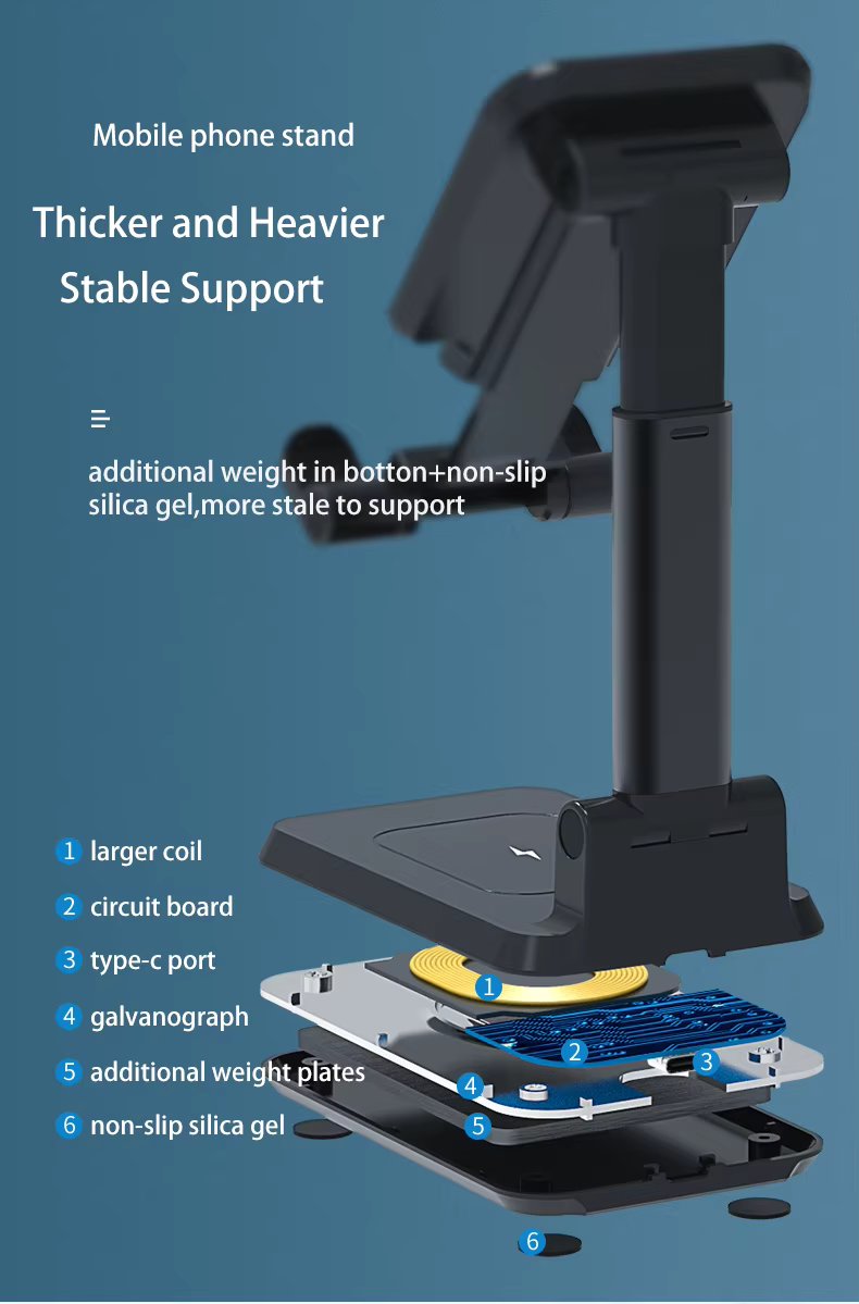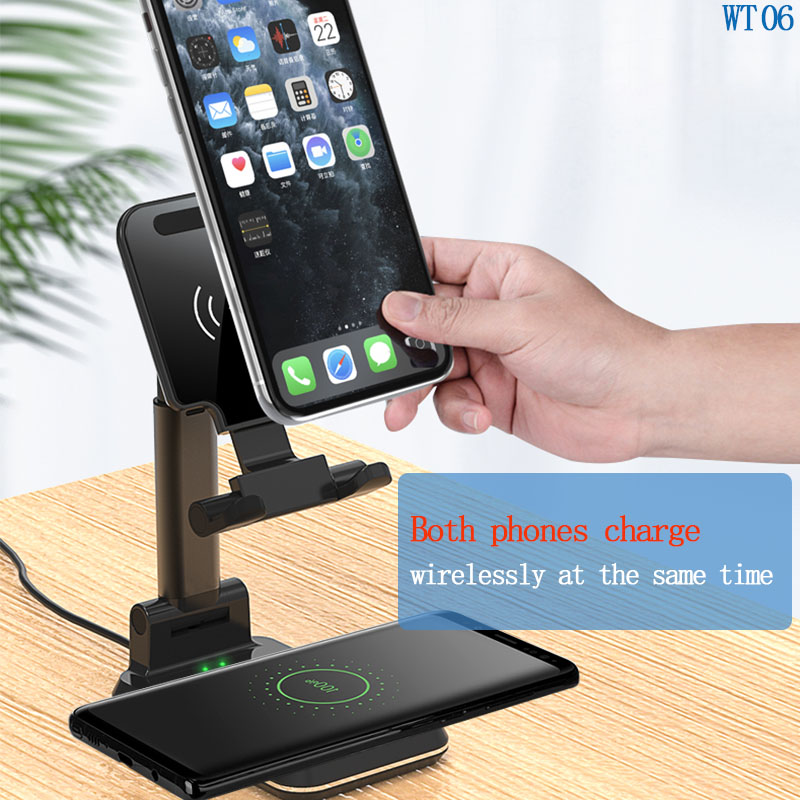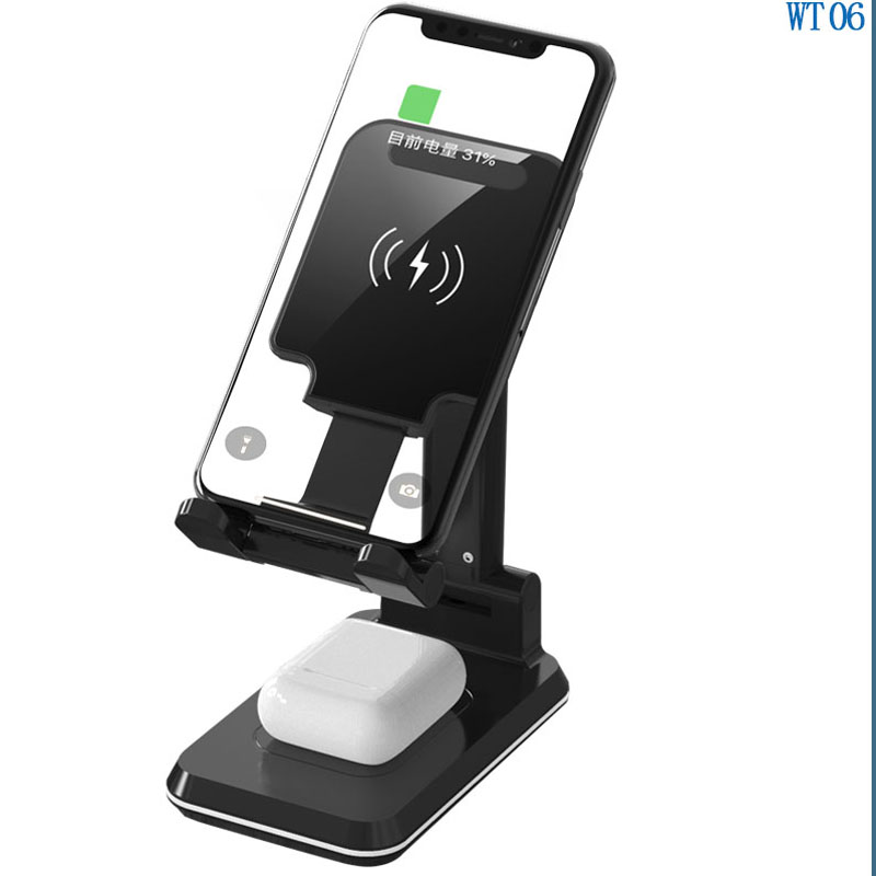 HE-T6 15W Stand Telescopic Desktop Phone Bracket Wireless Charging Cell Phone Holder for Mobile Phone for Earphone